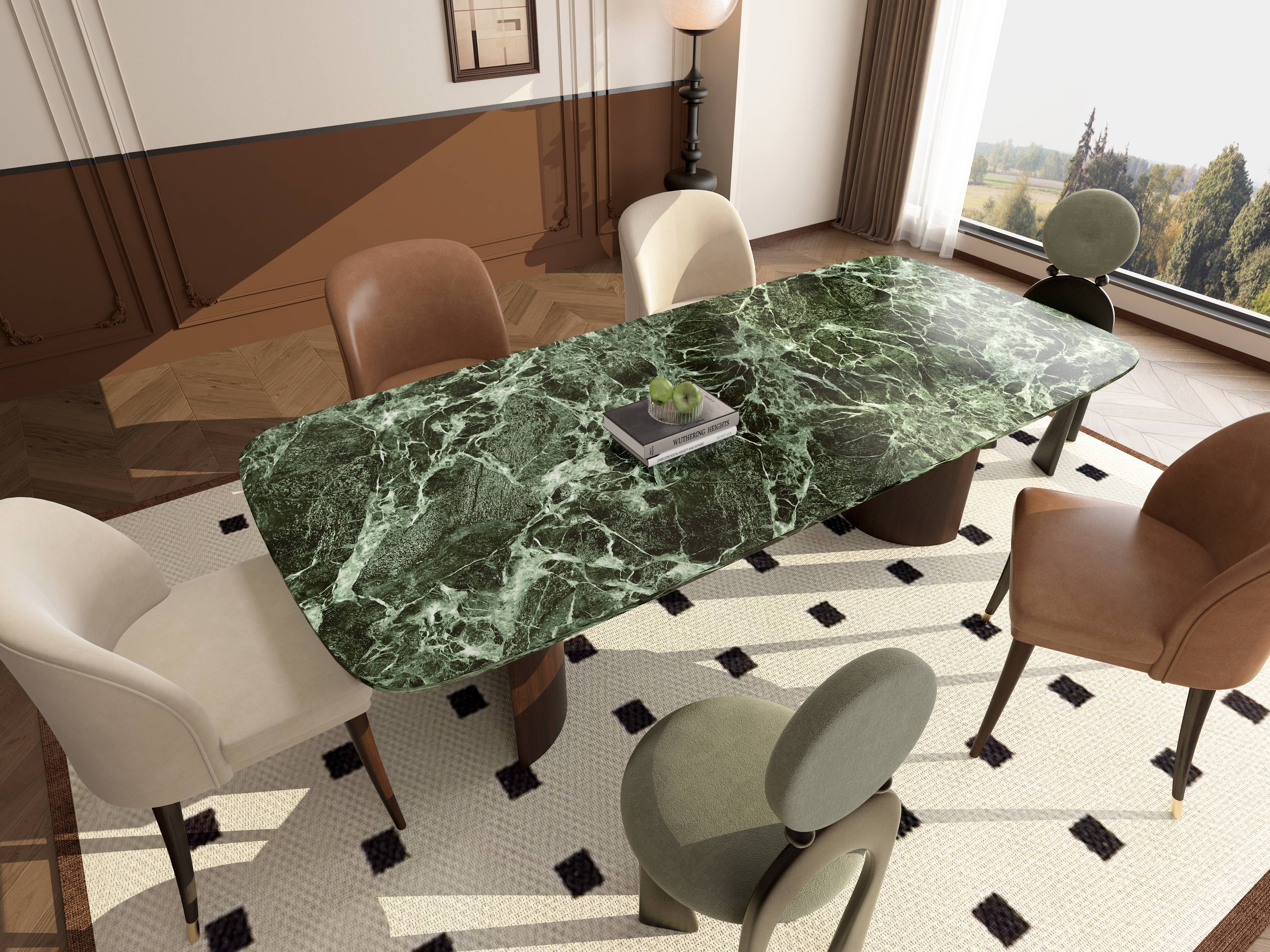 Prada Green Square Dining TableAlpine natural marble surface, carbon steel frame.