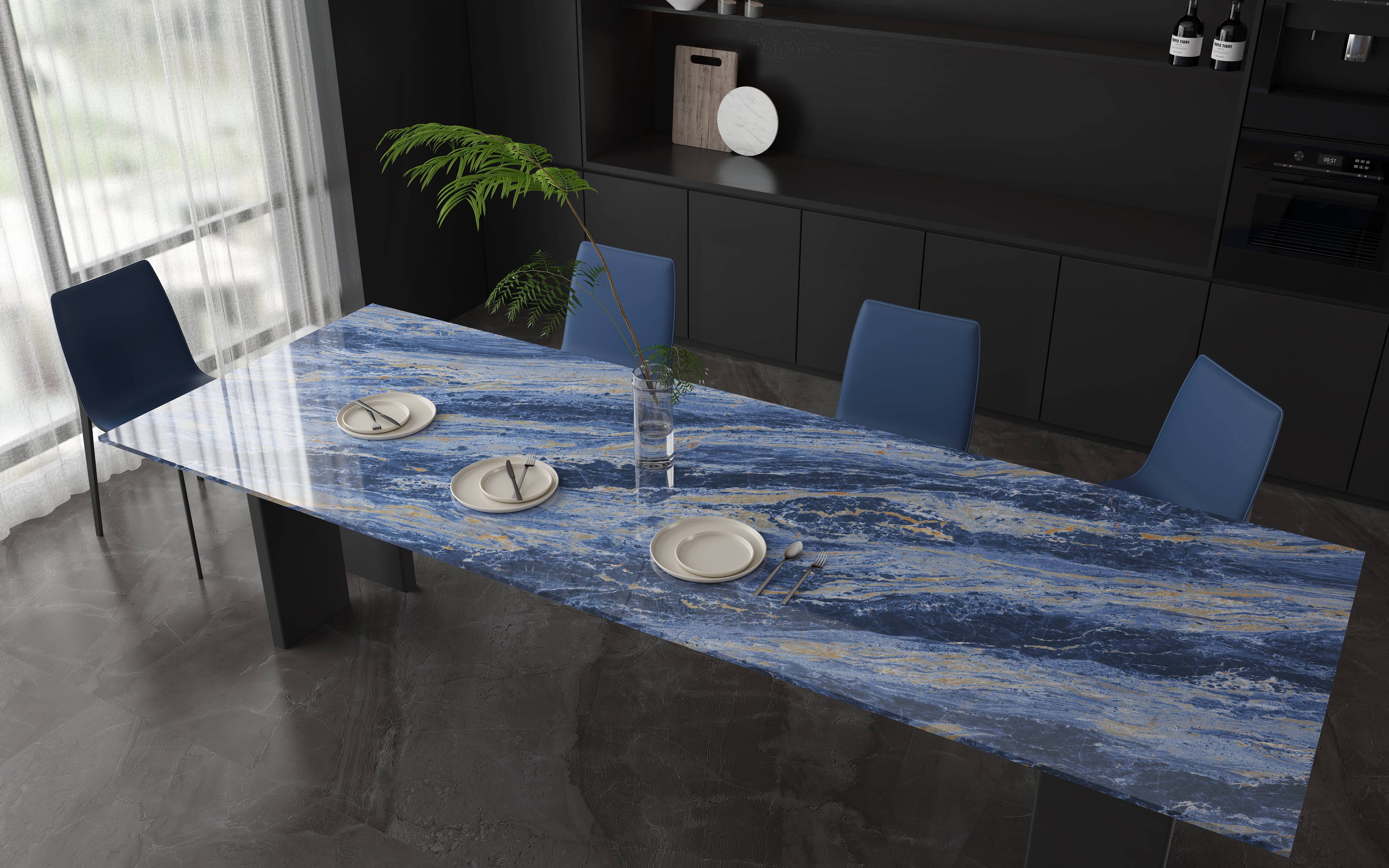 Sintered stone dining table tops are fired at extremely high temperatures, often exceeding 1200°C. As a result, the high temperatures of everyday home life will not affect the table or emit harmful substances.
